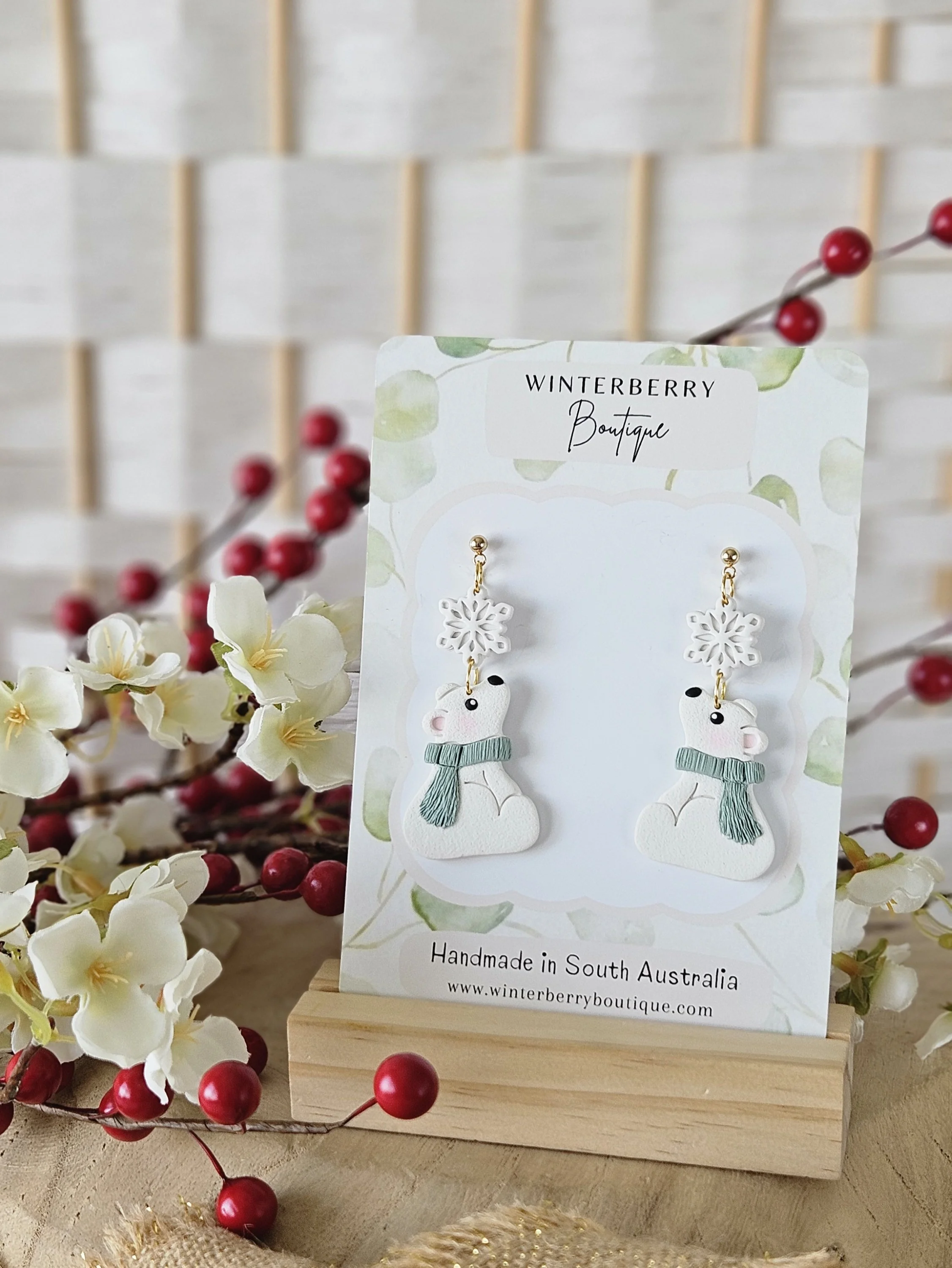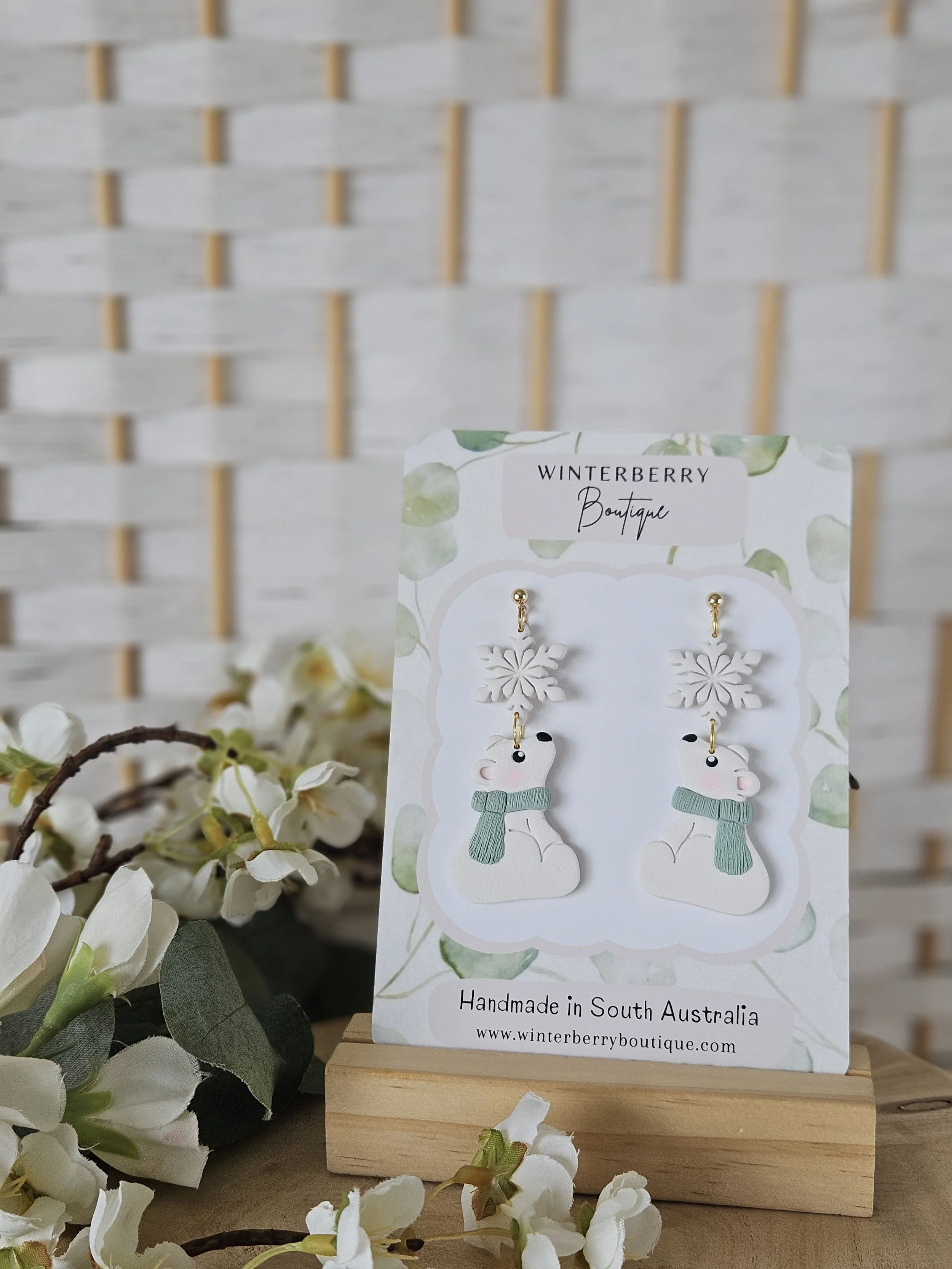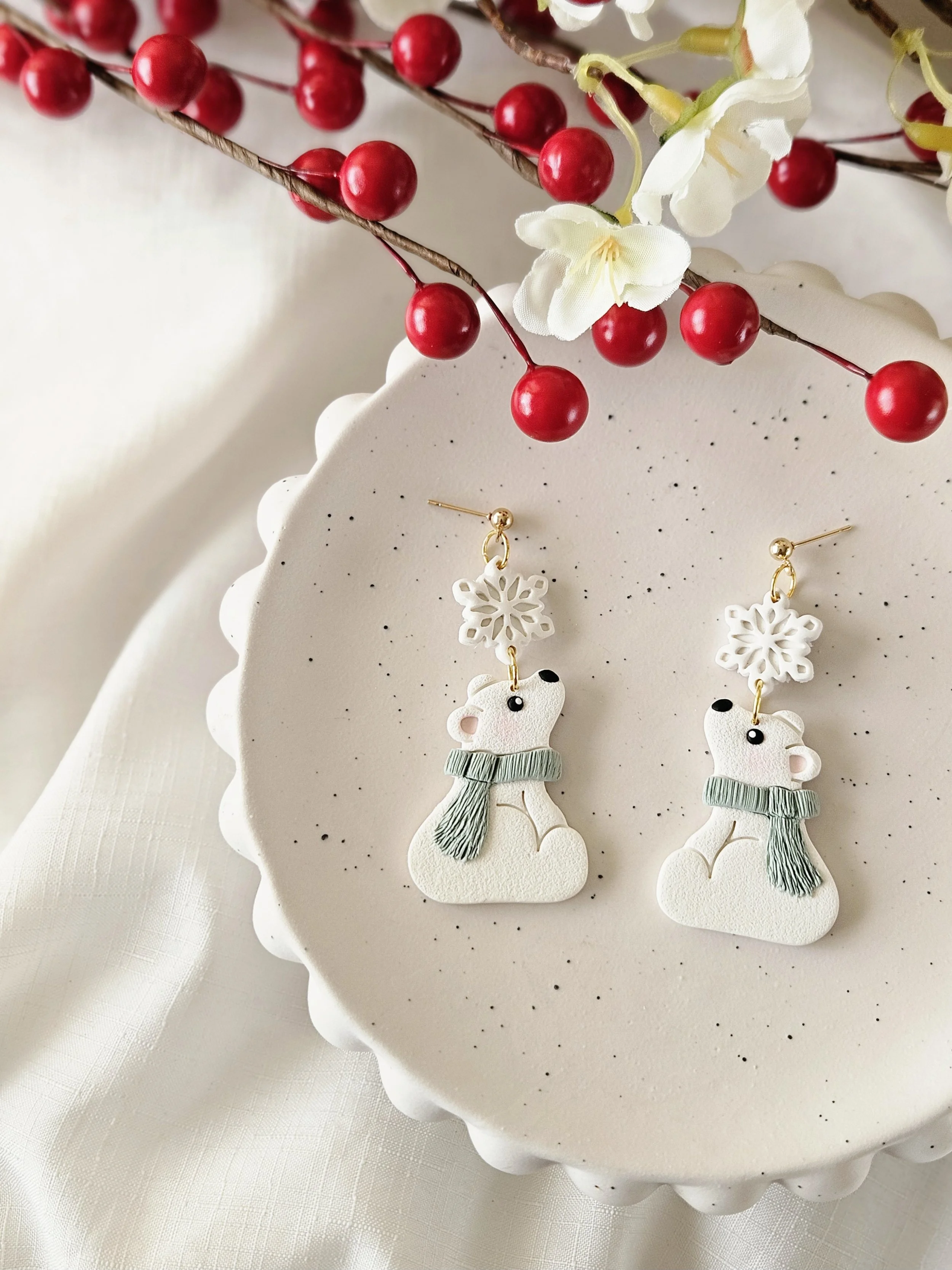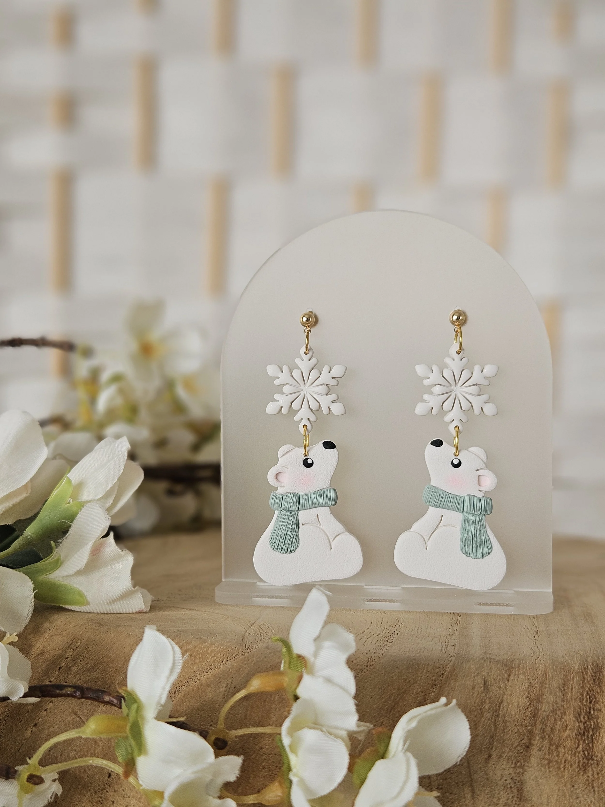 Winter Polar Bear Dangles in "Sage"